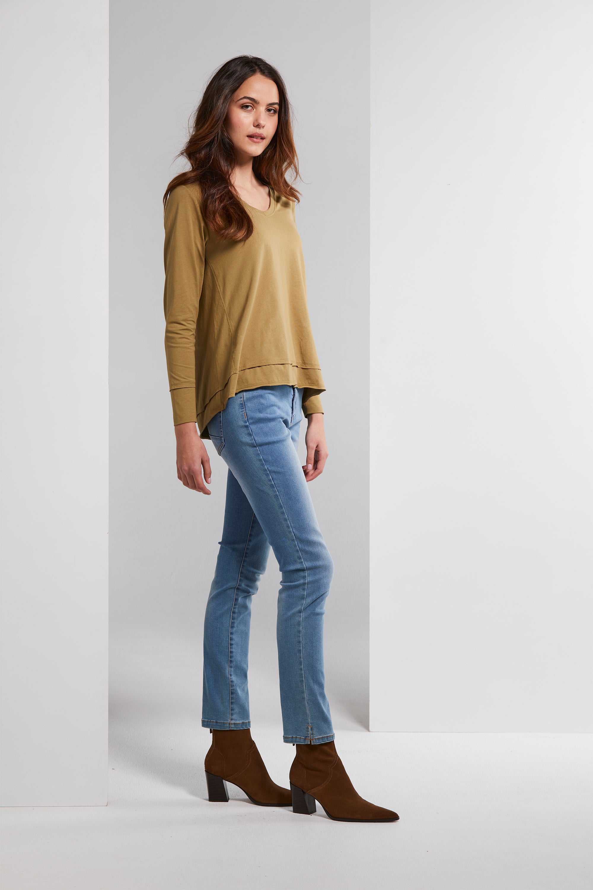 Make winter layering a breeze with our Capella Top. Its soft and comfortable cotton knit fabric, combined with the double hem detail, creates an effortlessly chic look. Available in two fantastic colours, this blouse is the ultimate addition to your winter wardrobe.
