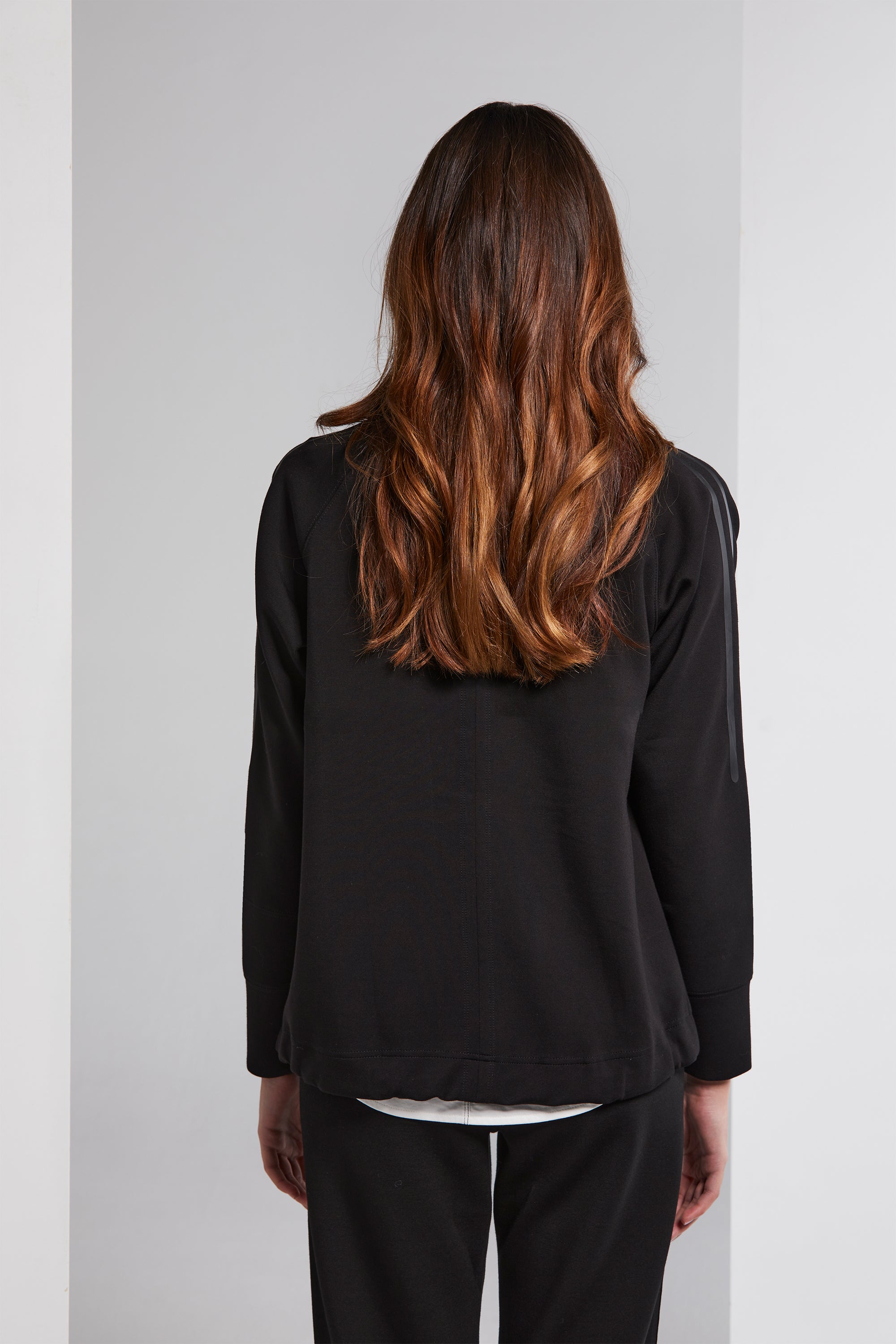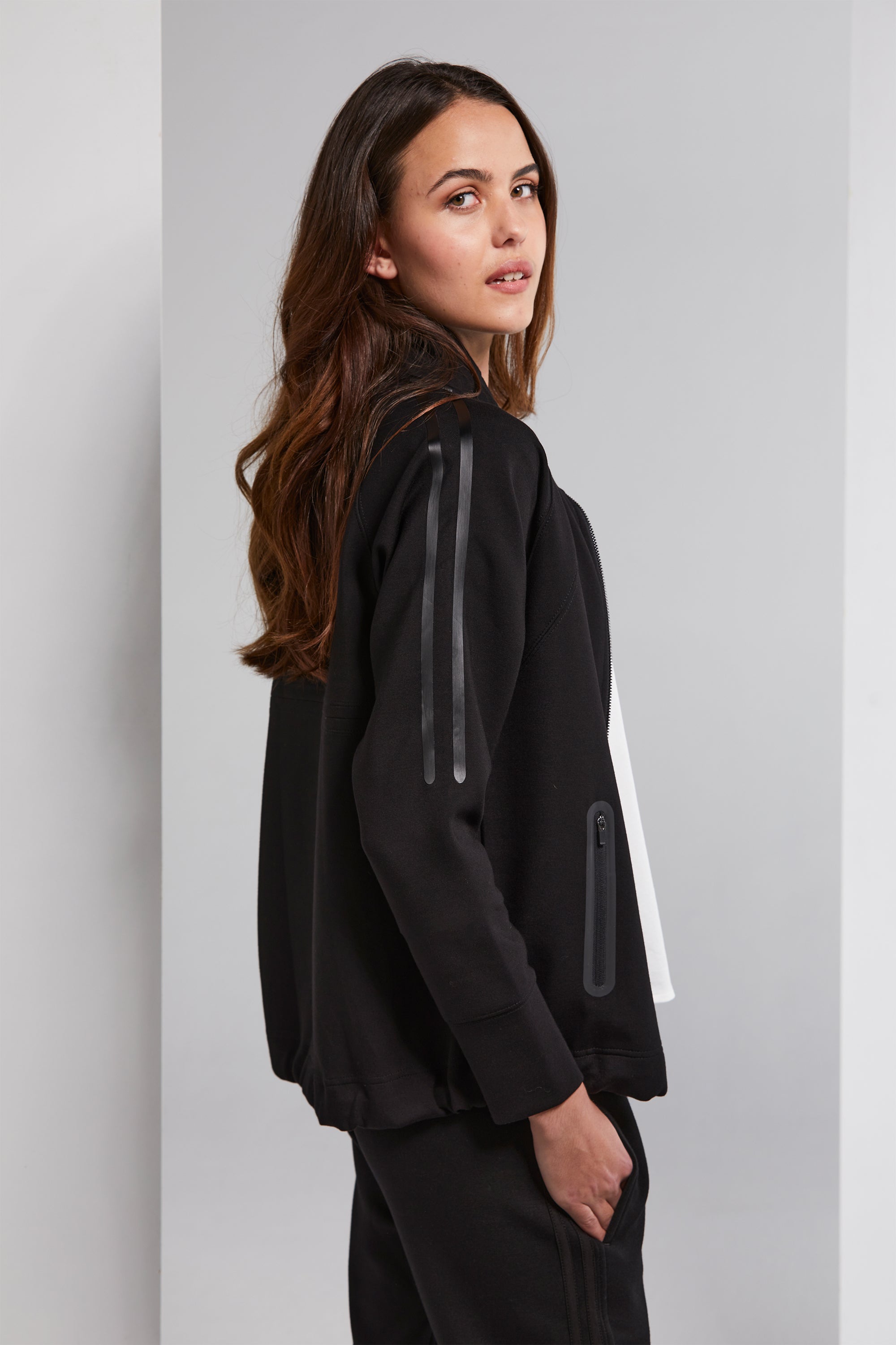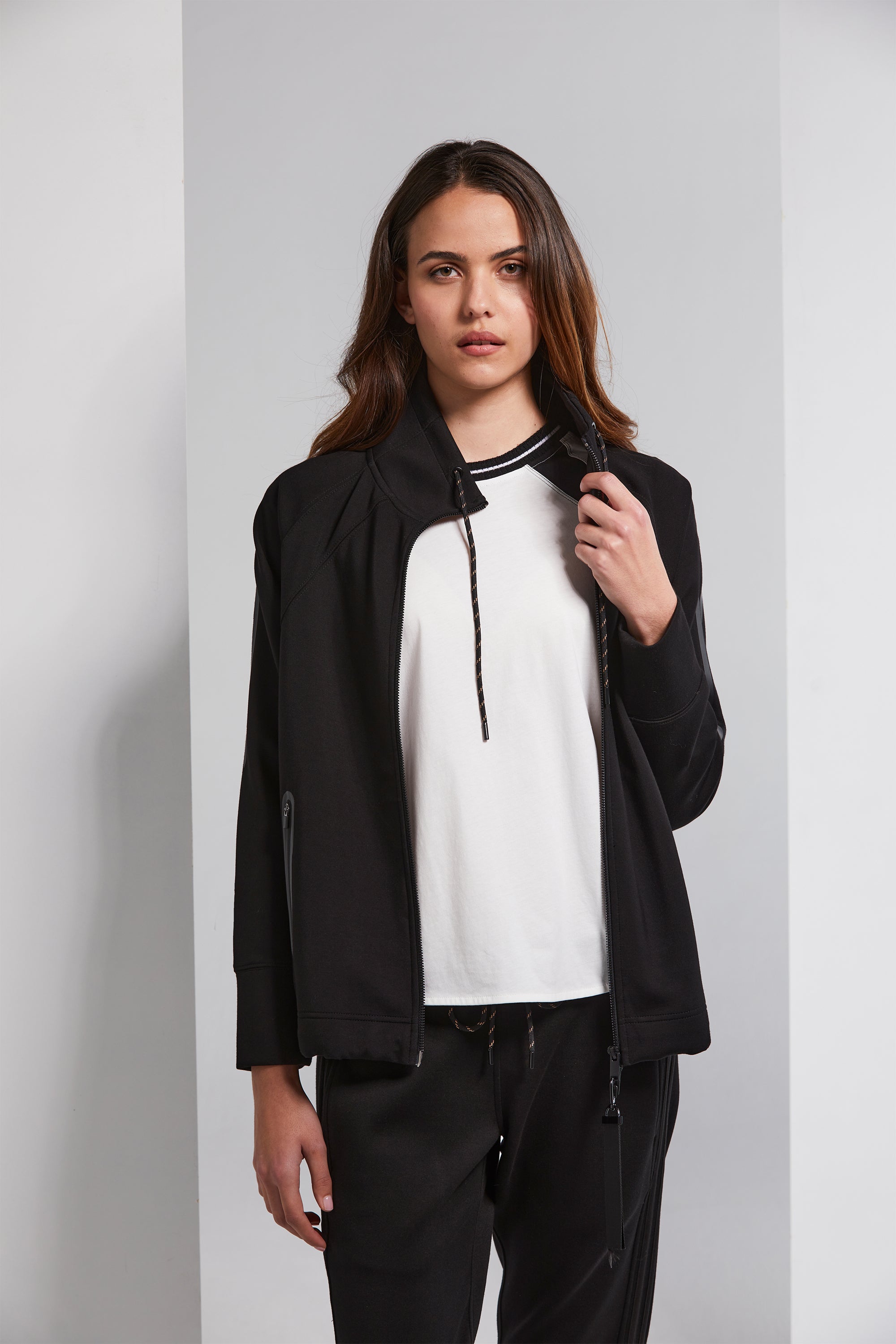 Elevate your style with our Chiara Jacket, a modern and boxy silhouette crafted from a soft rayon blend ponti. This jacket exudes sophistication with subtle sporty details, including heat-sealed tape stripes and contrast topstitching. The drawcord at the collar stand adds an extra touch of flair, making it perfect for embracing the sports luxe trend.