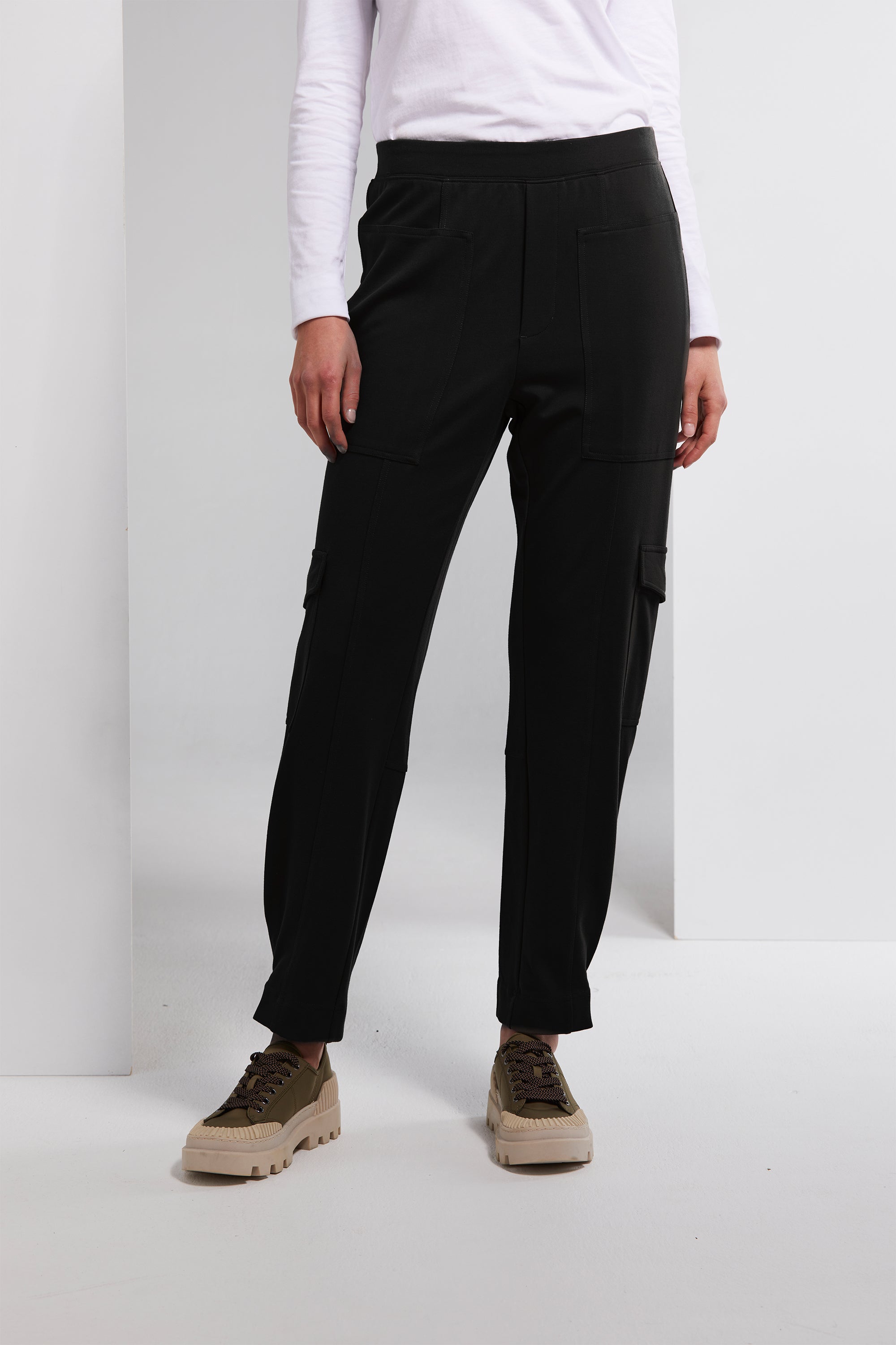 The Club Cargo Pant is your key to a versatile chic style. Its tapered design and elasticated waistband provide both comfort and a flattering fit. Cargo patch pocket detailing adds a touch of trendiness, while the box topstitched tuck at the outside leg hem completes the look. Designed with a faux front fly and a shaped back yoke, it's a go-to choice.