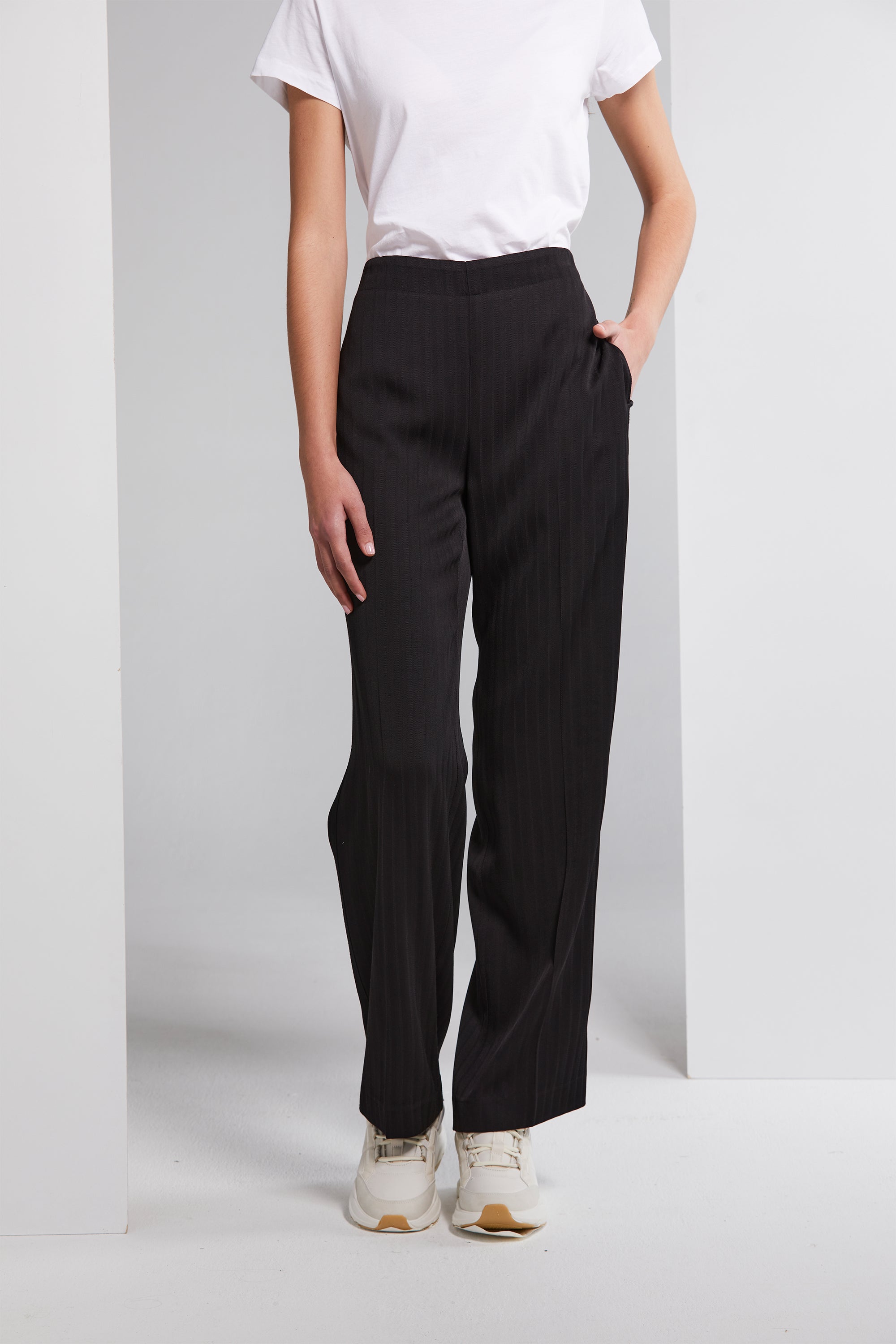 Discover the perfect blend of elegance and comfort with our Crown Pant. Crafted from a high-quality viscose rayon blend in a herringbone fabrication, these flattering wide-leg pants offer a touch of sophistication to your wardrobe. Featuring a flat front finish for a polished look and elastic at the back for easy pull-on comfort. Plus, enjoy the convenience of functional pockets.