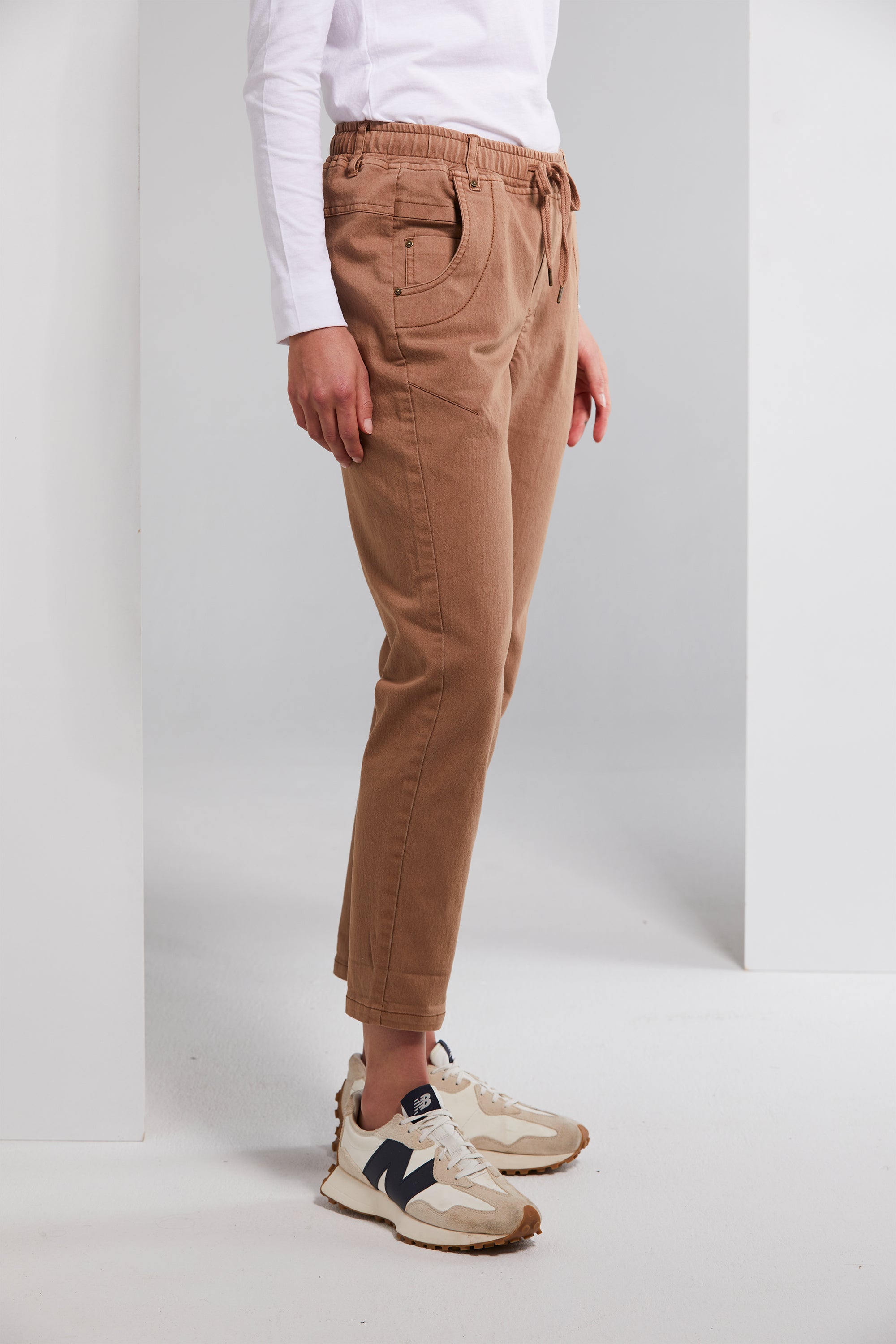 The Kaine Jean is a wardrobe essential that combines style and comfort effortlessly. Its elasticated waist and adjustable drawstring tie provide a personalized fit for all-day ease. The contrast stitching adds a hint of sophistication to its design. What makes it truly special is its unique colour, achieved through a special garment dye process. This not only ensures a soft and comfortable feel but also guarantees that each pant is distinctly yours.