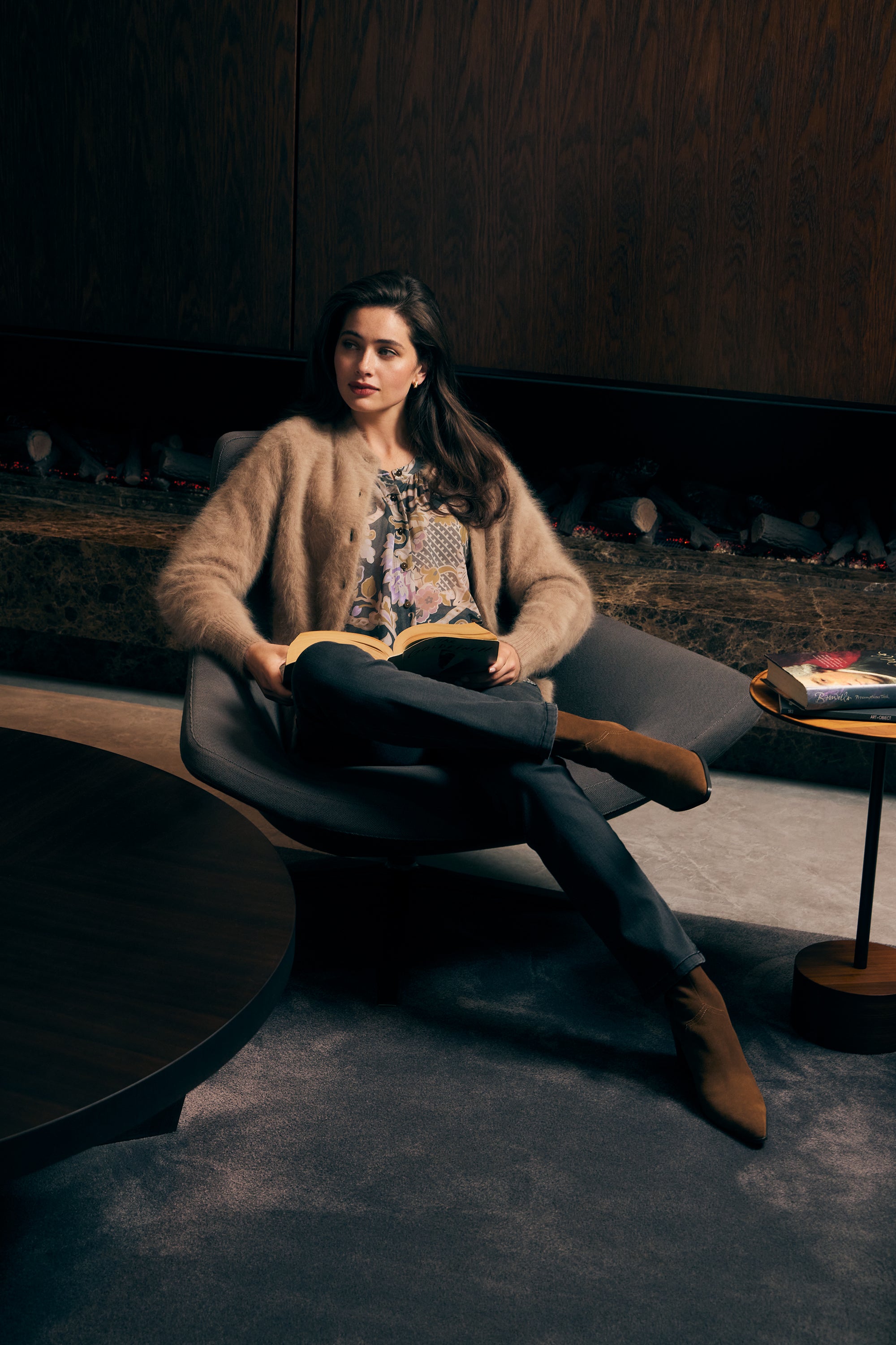 Care Instructions: Hand wash separately in cool water. Cool iron on reverse to reshape using minimum steam. Dry cleanable — full care instructions are labelled on garment.