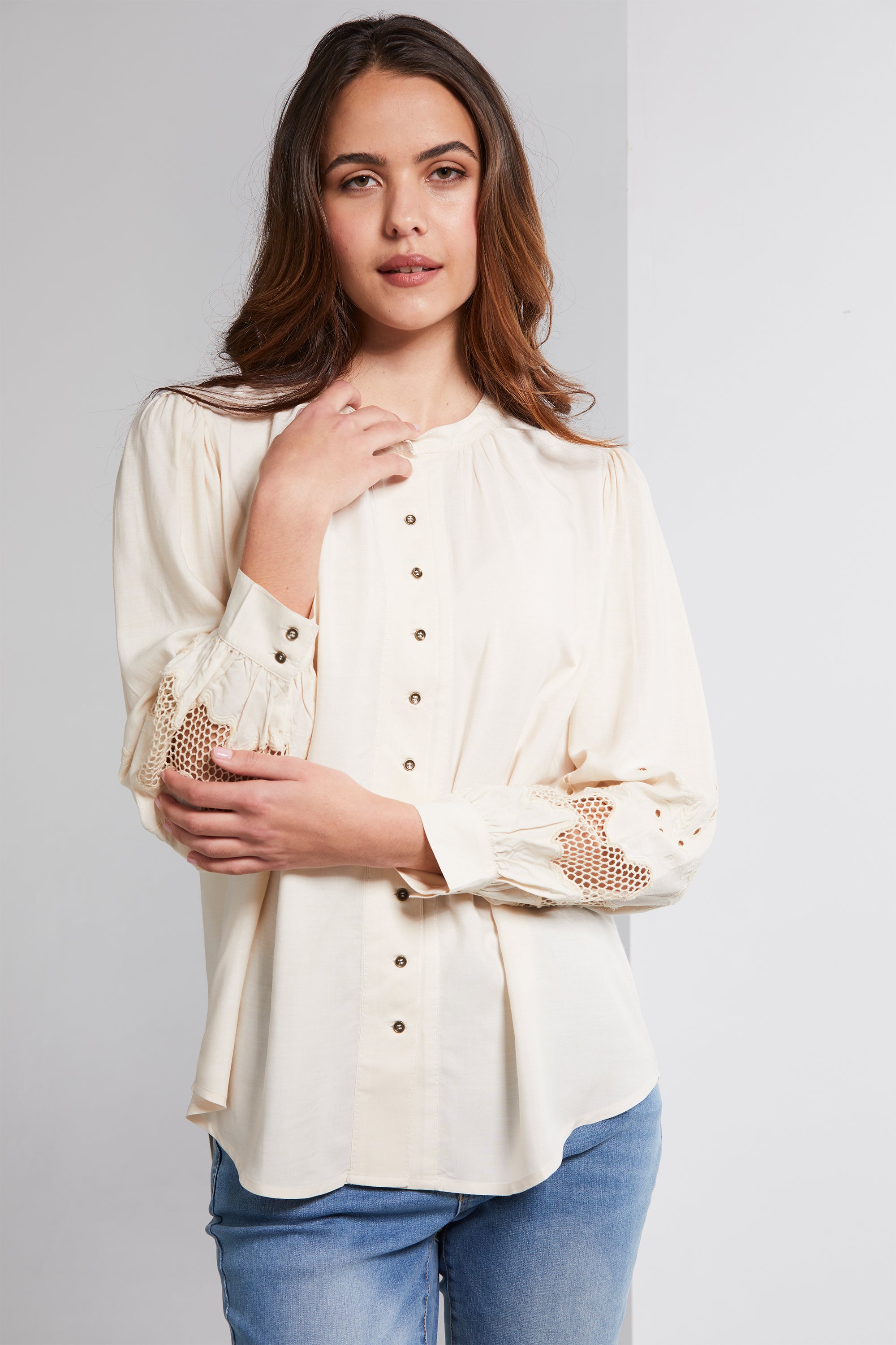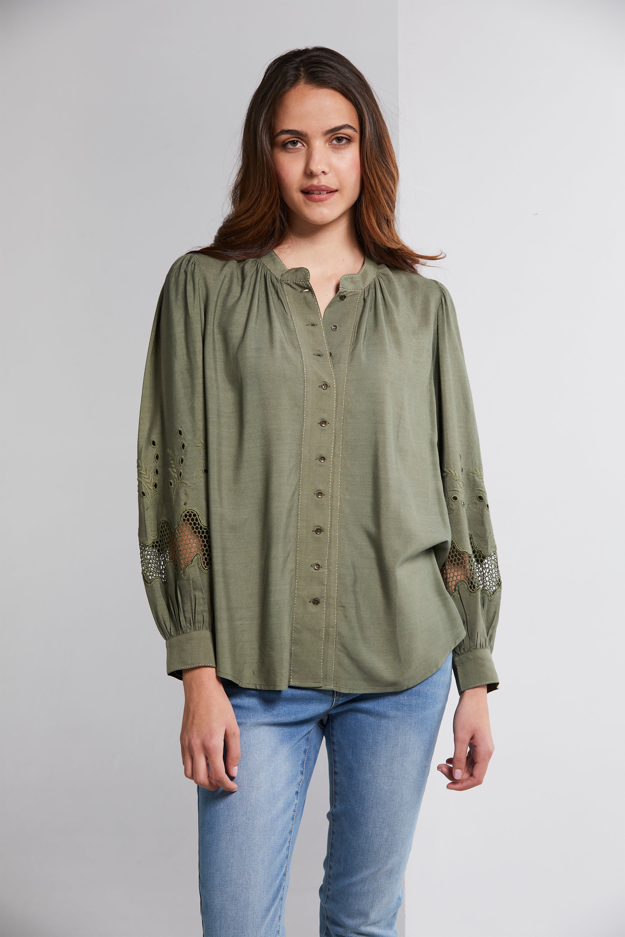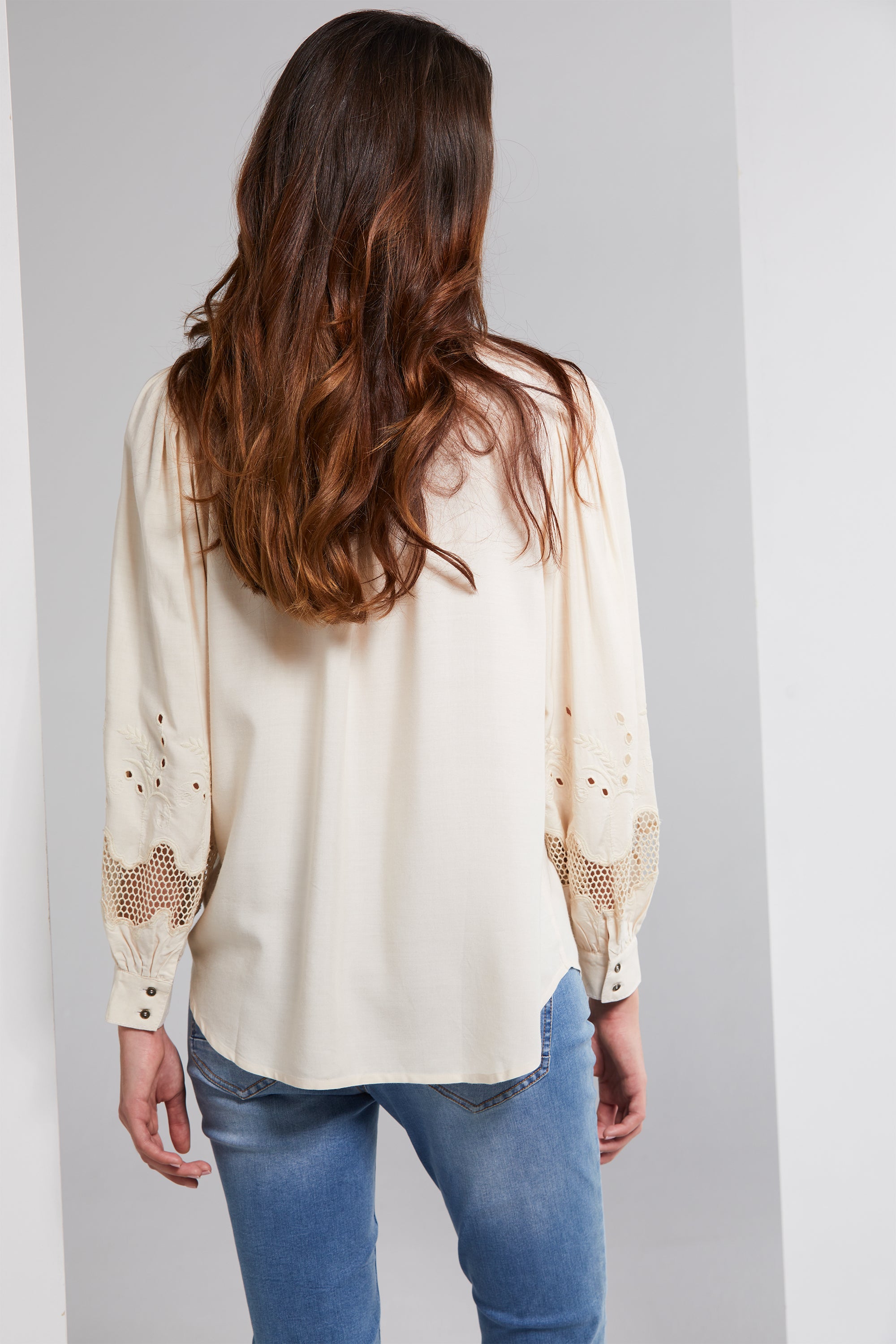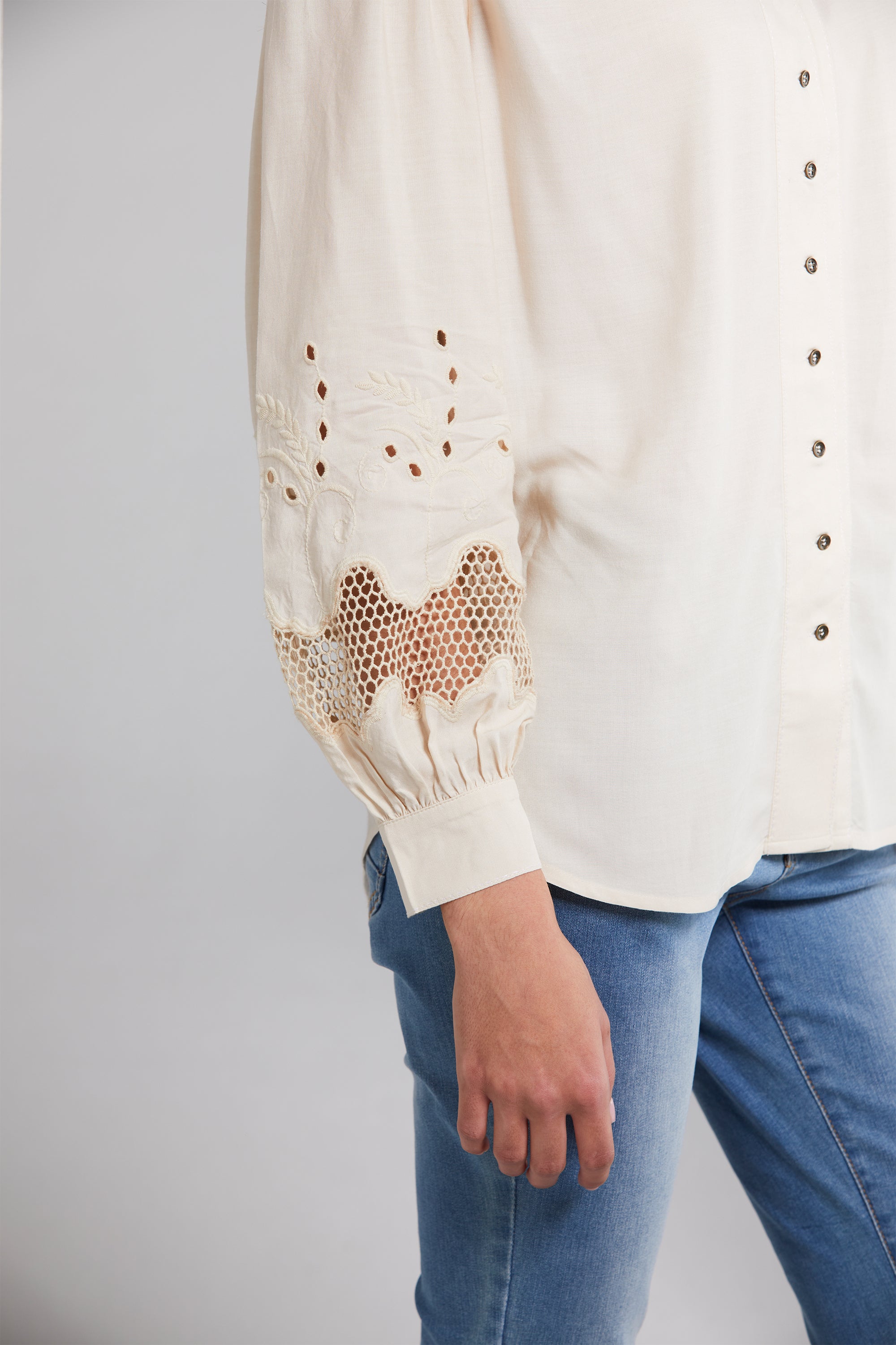 Step into effortless boho elegance with the Nina Shirt. Crafted from a lightweight viscose cotton blend, it offers both style and comfort. Intricate stab stitch embroidery graces the front placket, and neckline, while a cutout embroidery design features at the lower sleeve. Whether you're dressing up or going for a laid-back vibe, the Nina Shirt is a versatile addition to your wardrobe.