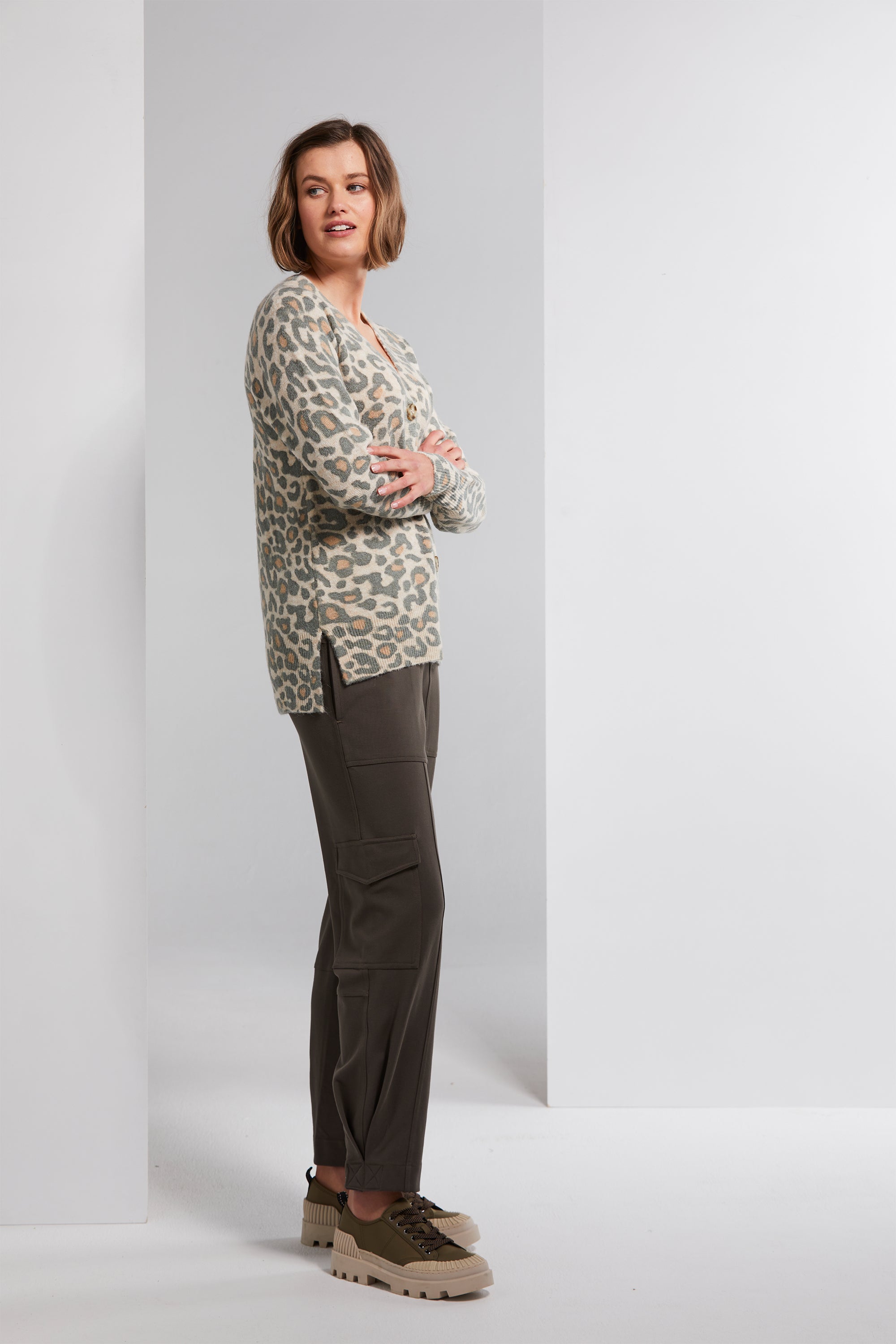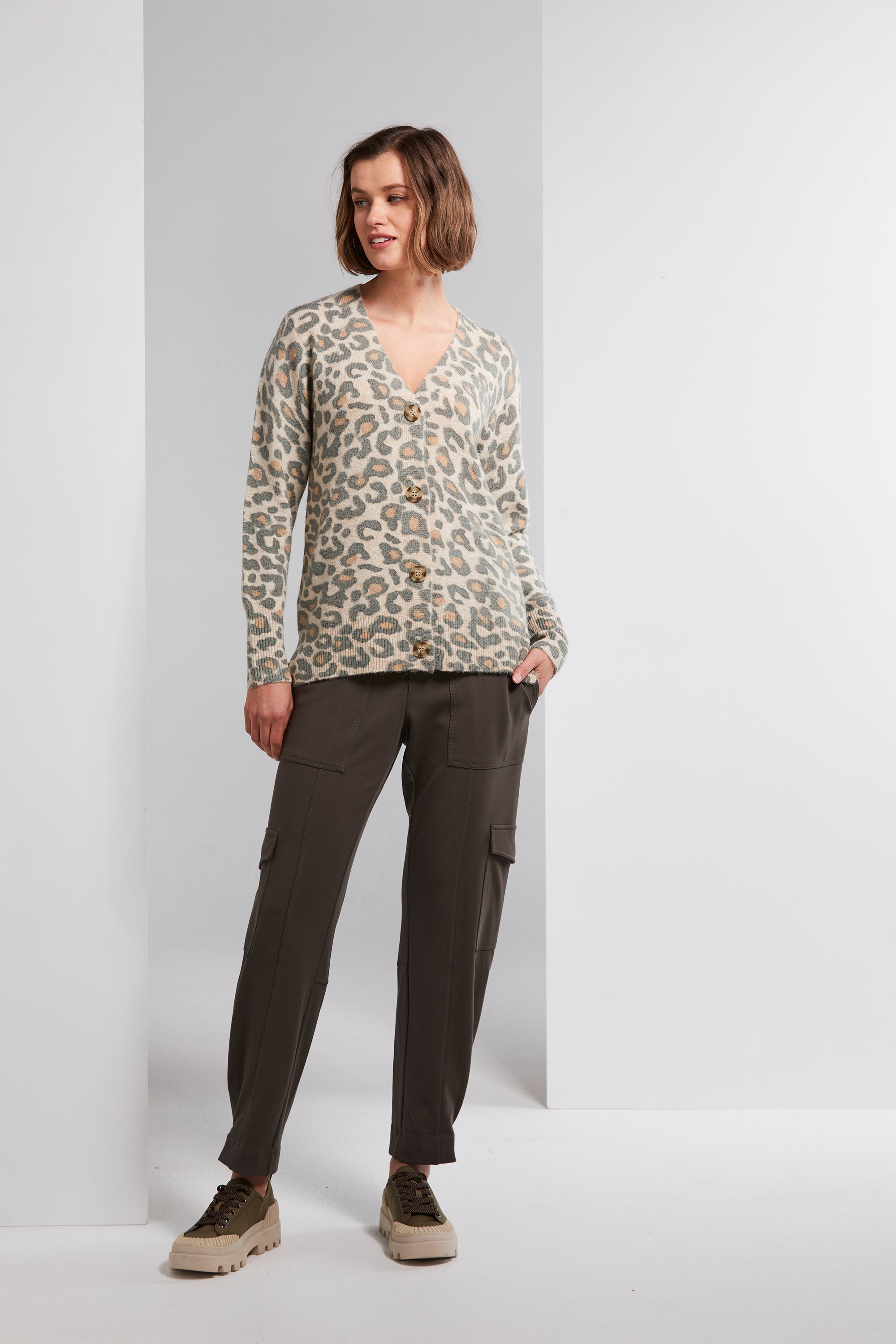 Achieve effortless chic with the Solana Cardi. This soft animal print cardigan, crafted from a luxurious wool blend, is adorned with light tortoiseshell buttons for a touch of sophistication. Featuring side seam splits and rib-knit cuffs and hem, it combines style and comfort seamlessly. Made from a blend of Wool and Alpaca, the Solana Cardi is a versatile addition to your wardrobe.