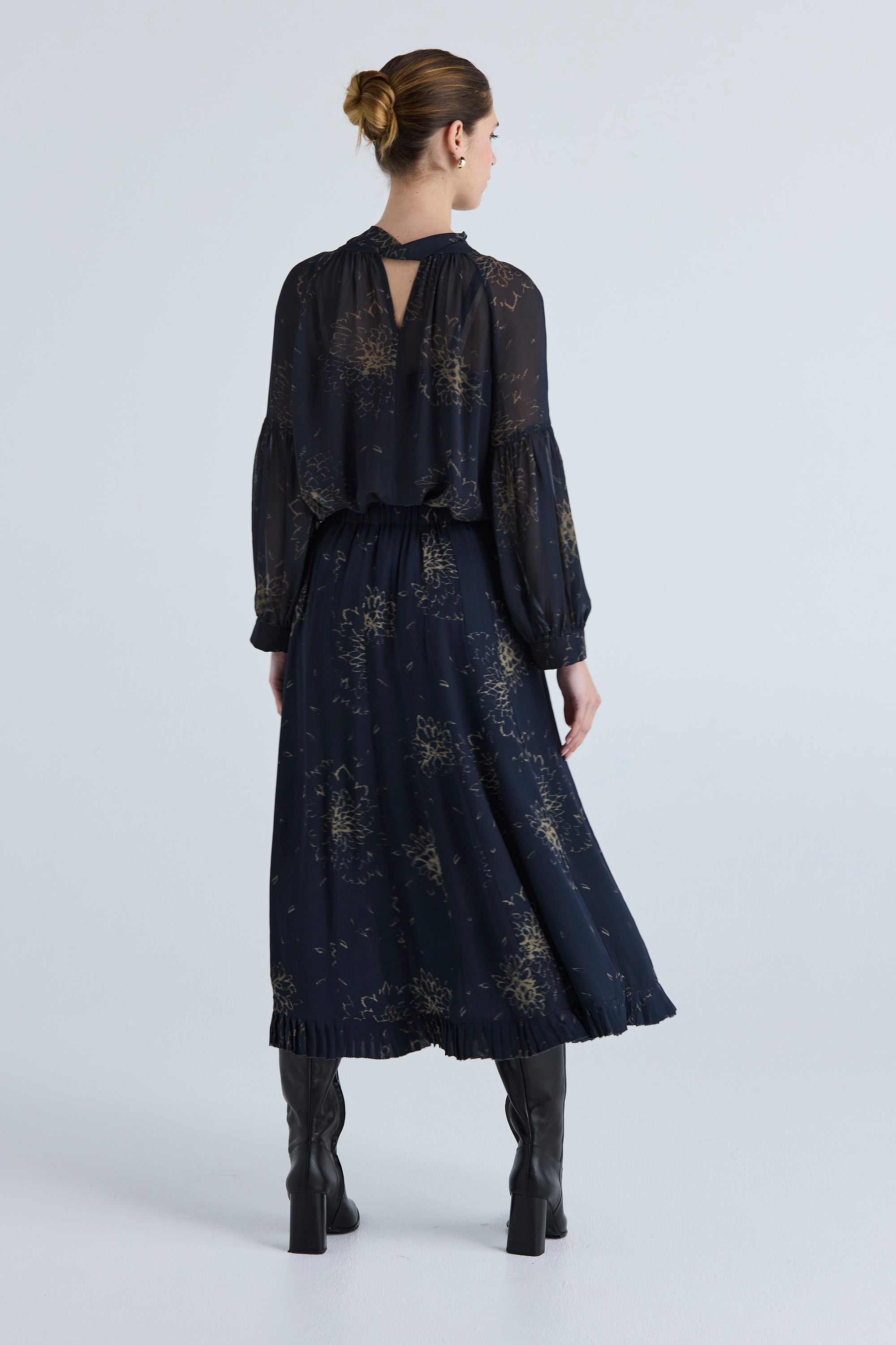 Step into sophistication with the Crown Skirt, a beautifully crafted floaty panelled skirt. Dressed in a sophisticated hand drawn floral print, it's a true testament to timeless style. The skirt boasts an elasticated waistband, providing both comfort and style. But what truly sets it apart is the pleated hem ruffle, which adds a graceful flourish to your look, making it perfect for any elegant occasion.