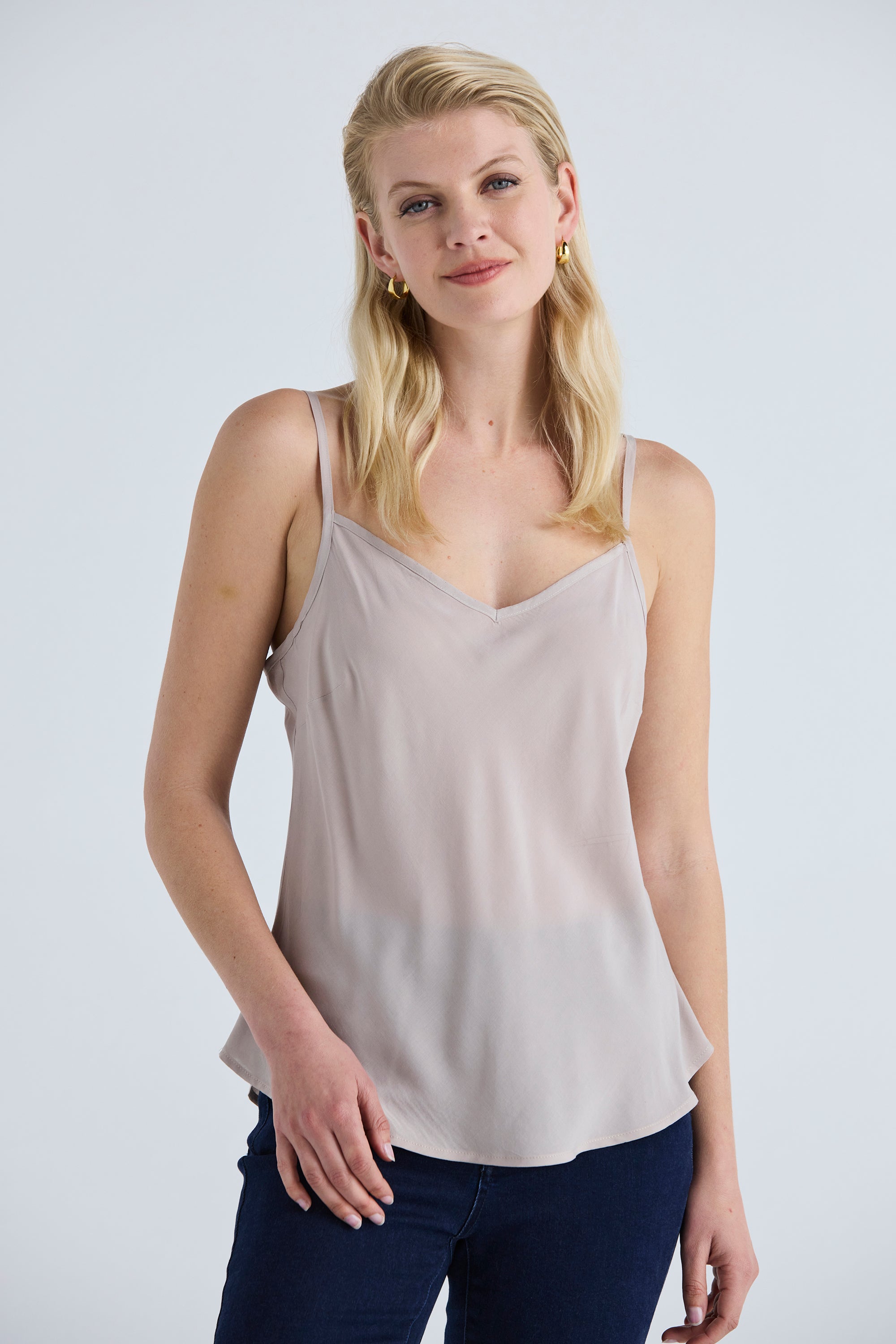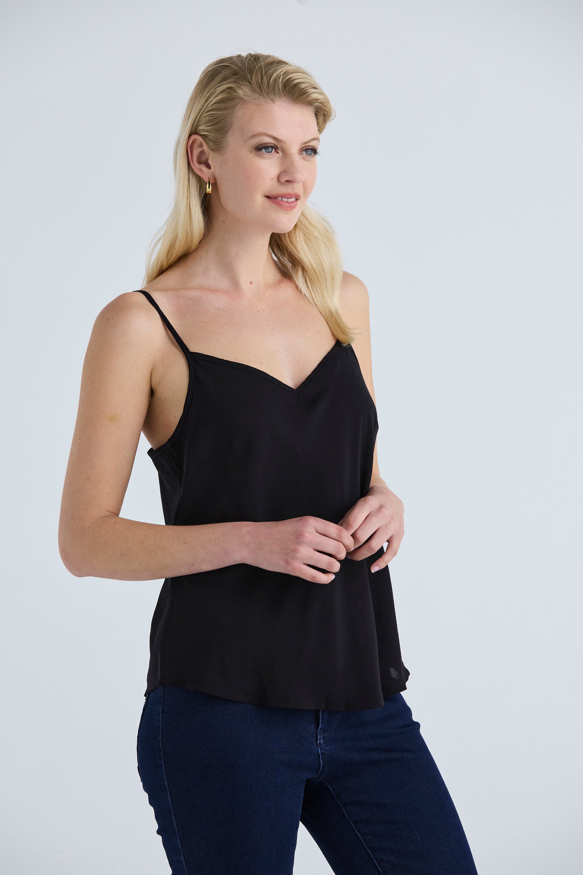 The LTL Cami is a wardrobe staple crafted from bias-cut rayon, featuring adjustable shoestring straps and a soft V-shaped neckline. Perfect for layering under your favourite Lania blouse.