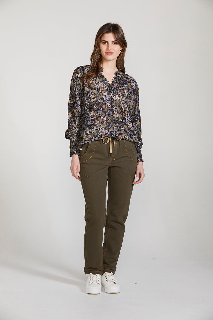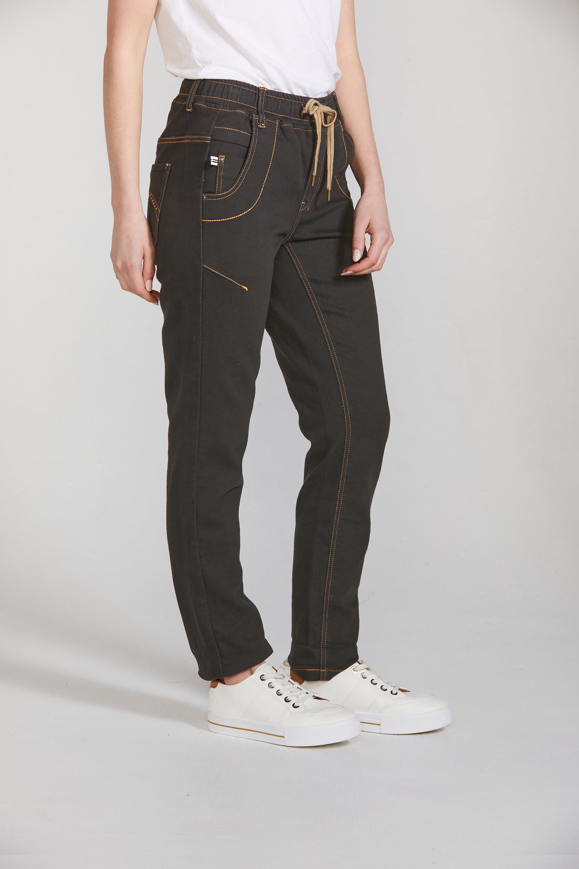 The Canvas Pant features an elasticated waist, adjustable drawstring tie and contrast stitching. The distressed colour is achieved through a special garment dye process that provides a soft hand feel and makes every pant unique.