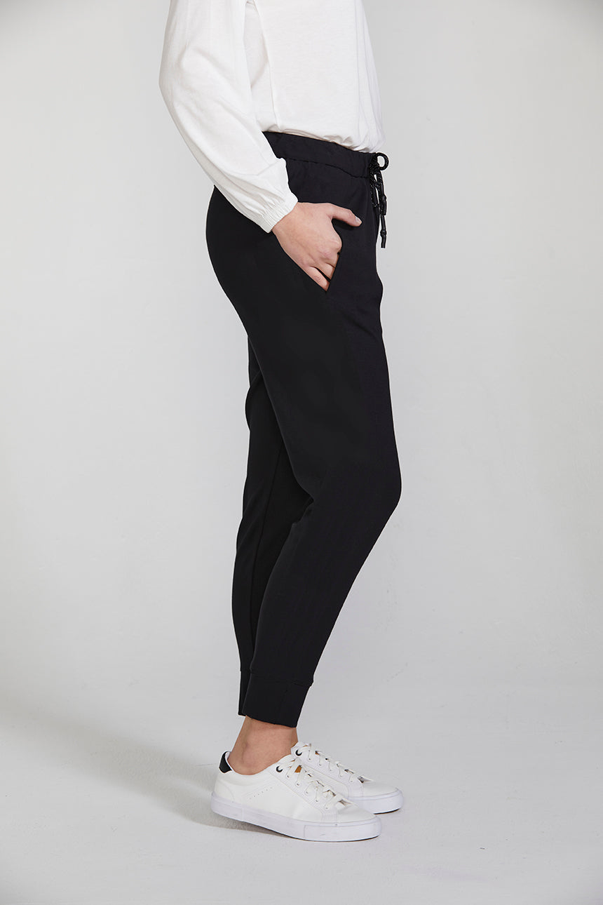 This relaxed jogger in sleek viscose elastane fabric features side pockets and an elasticated waistband with an adjustable draw cord. Complete the look with the Fleet Coat and sneakers.