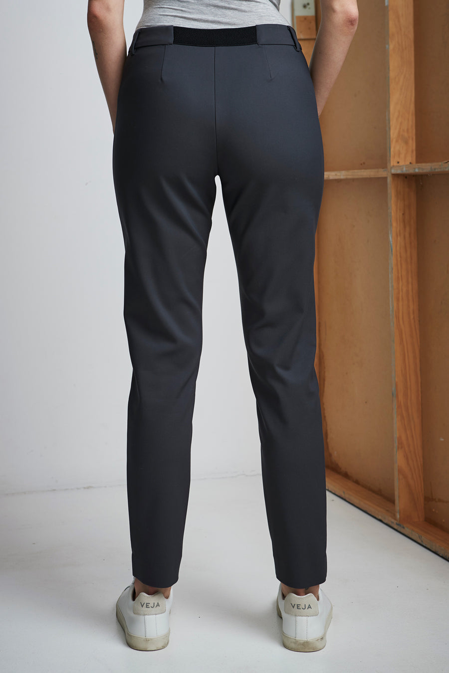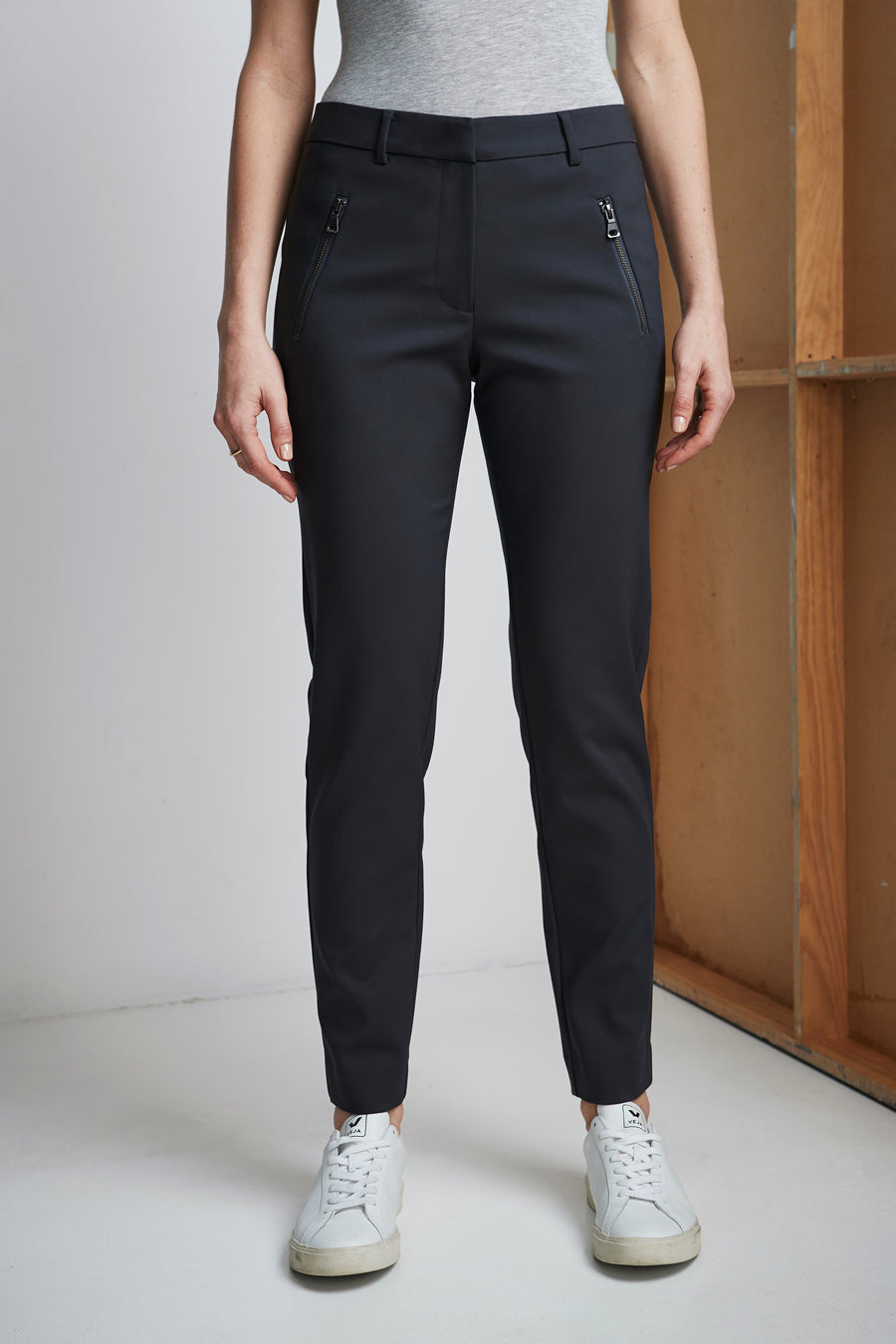 Suit it up with Jolie Pant, sitting mid to high — waisted with centre back elastic panel, slim leg & chunky exposed zipped pockets, a pant for every occasion.