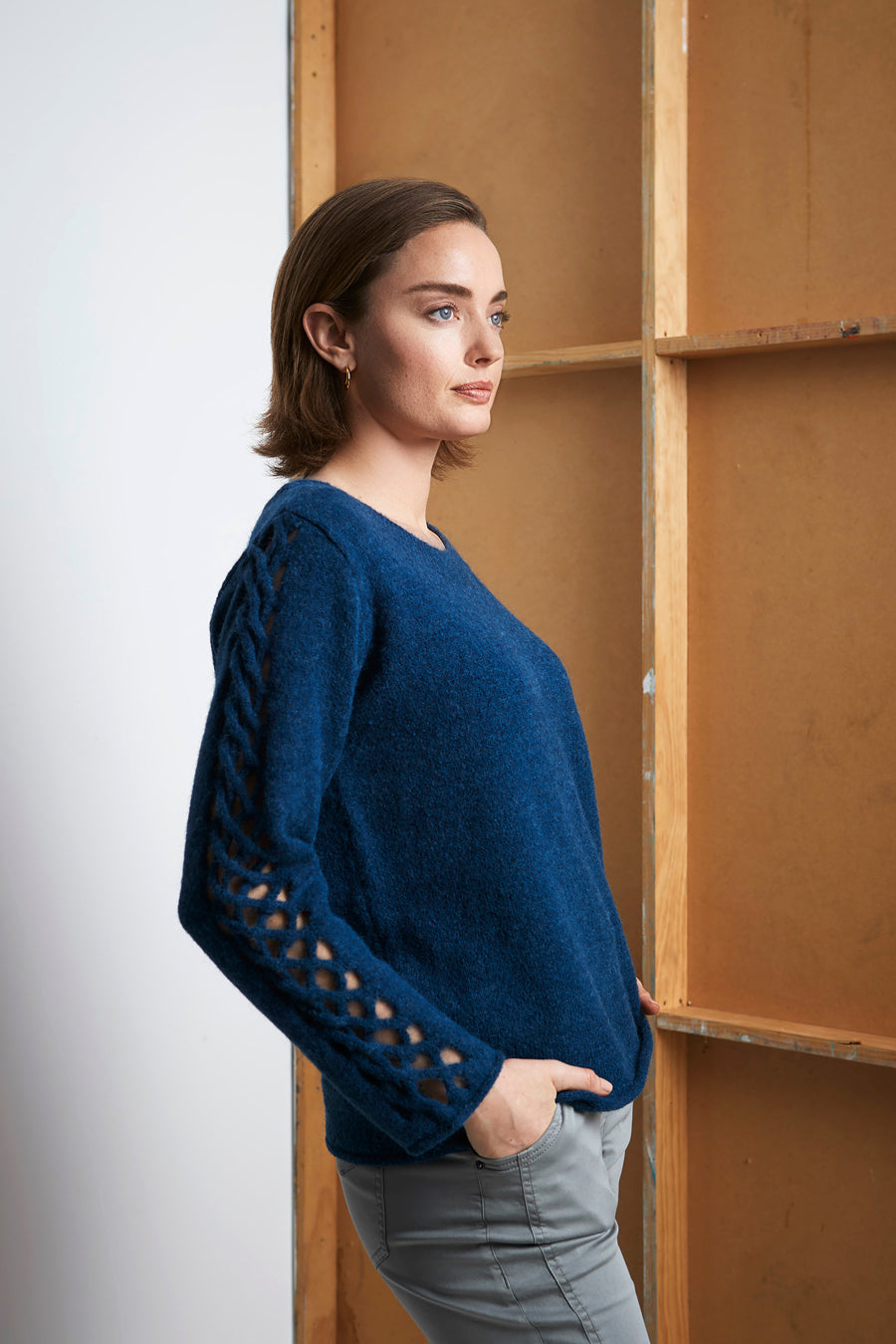 The Lattice sweater, beautifully designed for your comfort with its warm feel, round neck and long sleeves. Featuring cross weave sleeve detail.