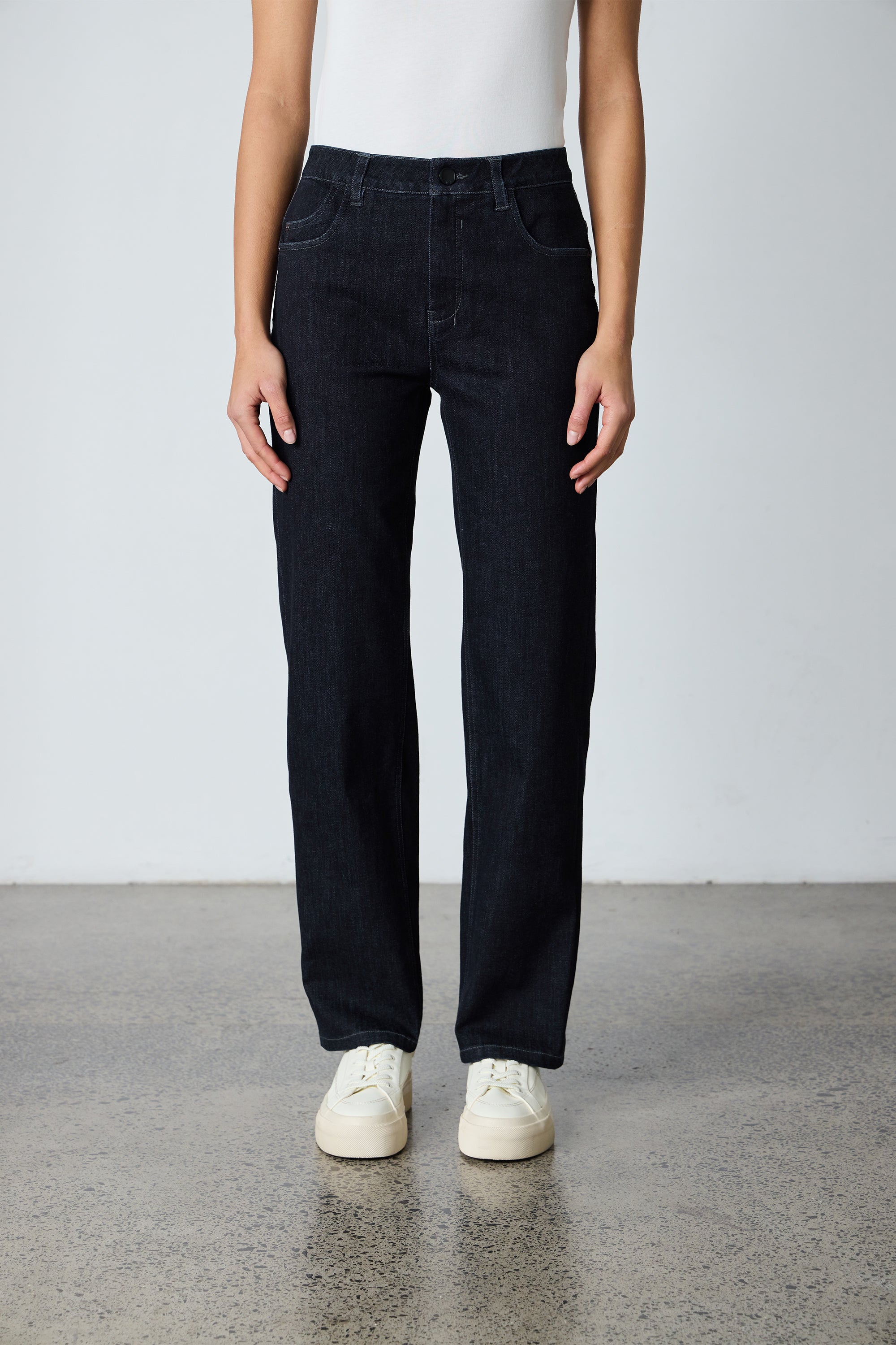 The Legal Wide Jean is relaxed fit and a full length which can be turned up for a cropped look, this style is best described as a new essential. Crafted in super stretchy denim this wide-leg jean showcases contrast-heavy topstitch and features topstitch on the back pockets. Wear it with sneakers for a casual look or dress it up with sandals.