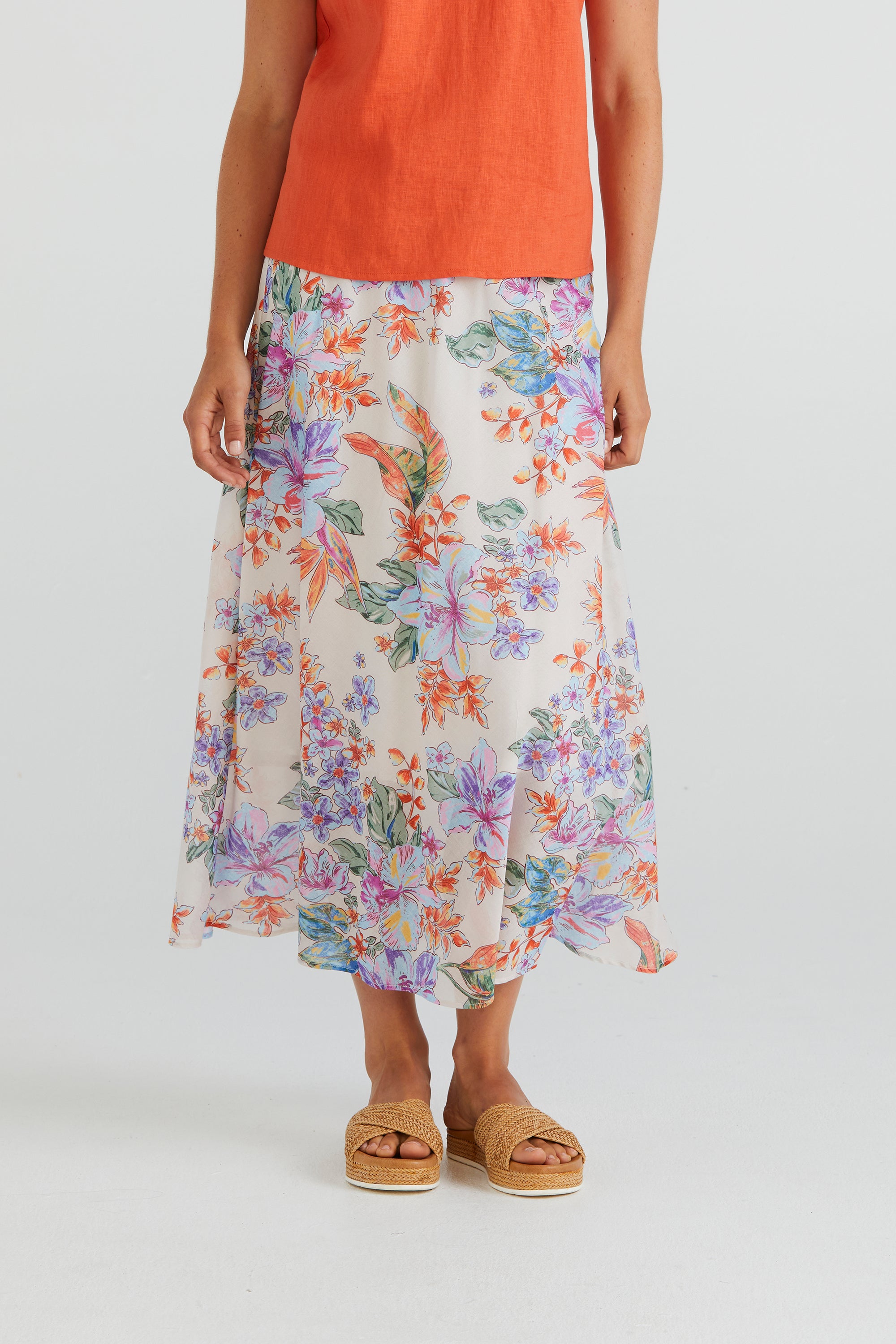 Introducing the Lily Skirt, a bias-cut linen skirt featuring the vibrant Lily print. Its concealed elastic waistband offers a comfortable and flattering fit, while the fully lined construction ensures ease of wear. Elevate your summer wardrobe with this versatile skirt, perfect for beach strolls, brunch dates, and everything in between.