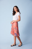 A tiered skirt with soft gathers through panel seams and an elasticated waist. The soft floral print in summer brights will complete your daytime summer look.