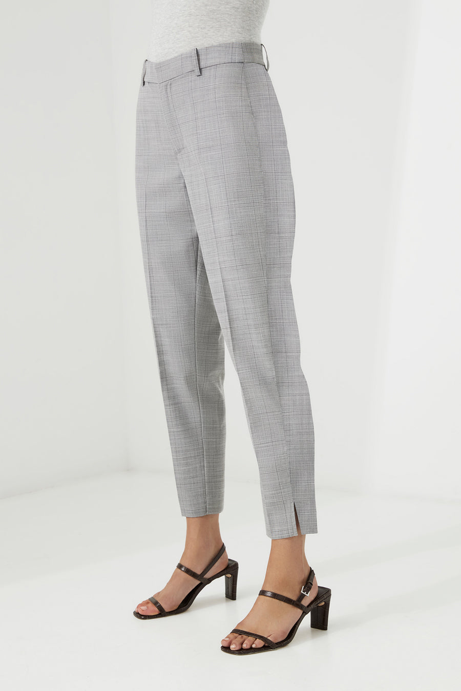 Tailored pant, with our extra comfort waistband, straight 7/8 leg with hem split.
