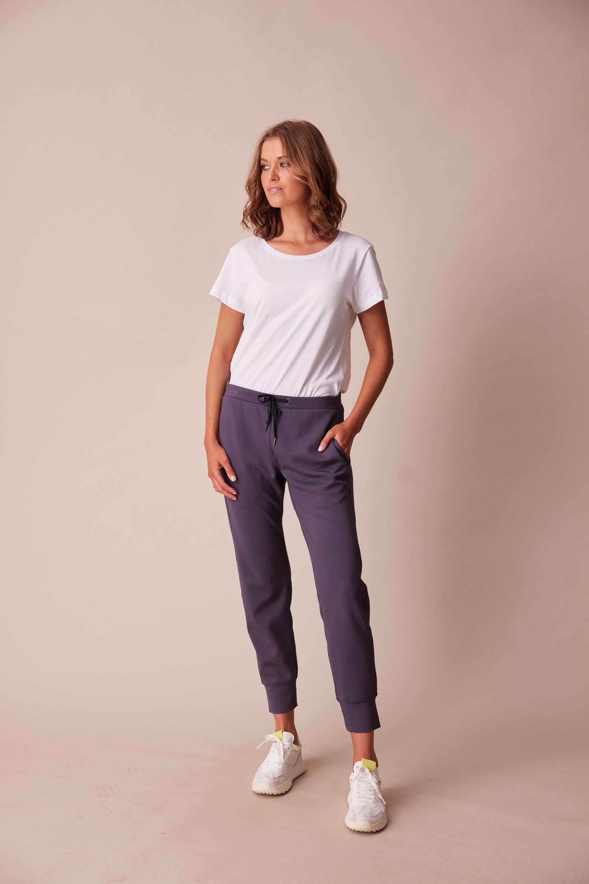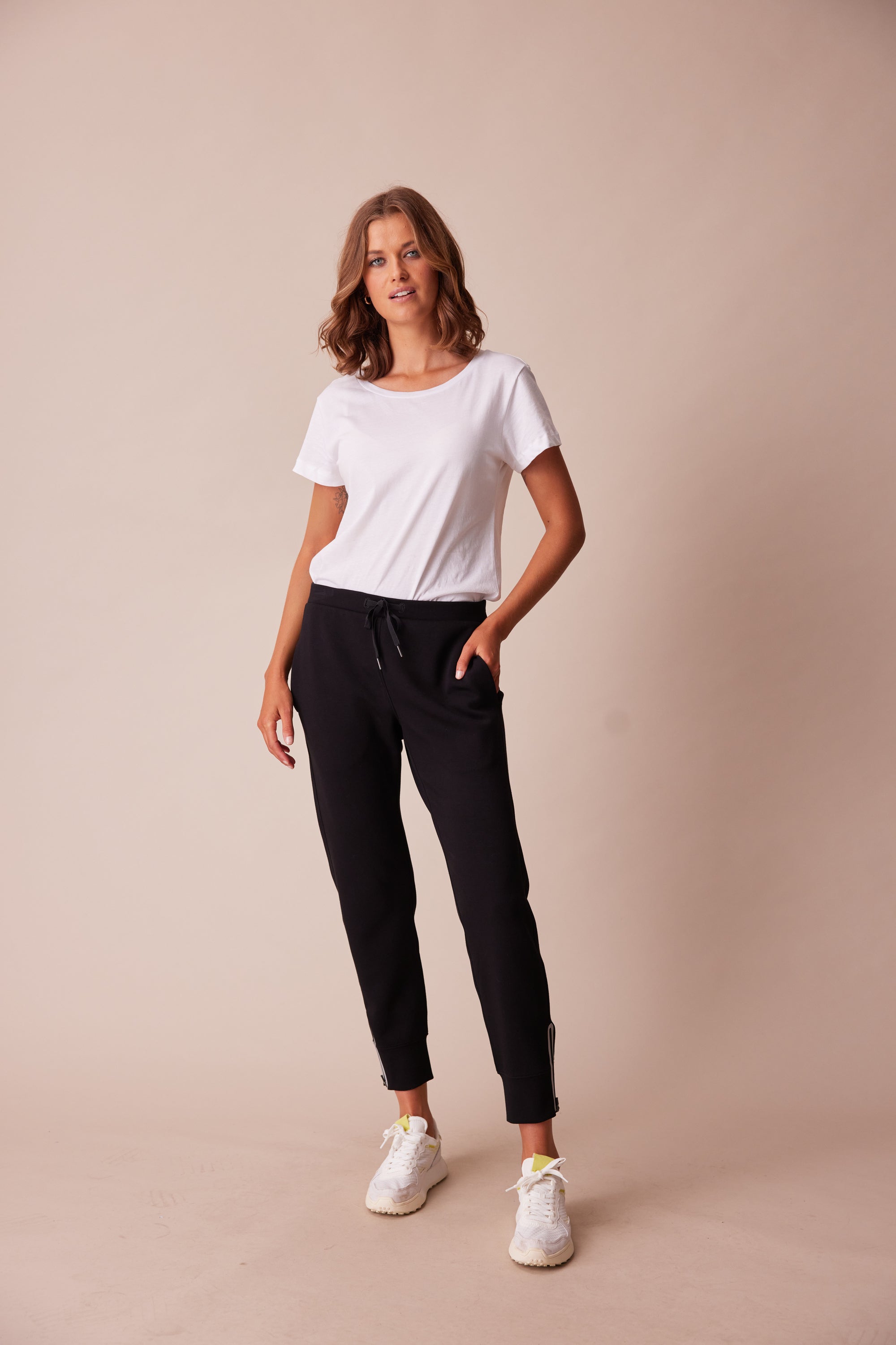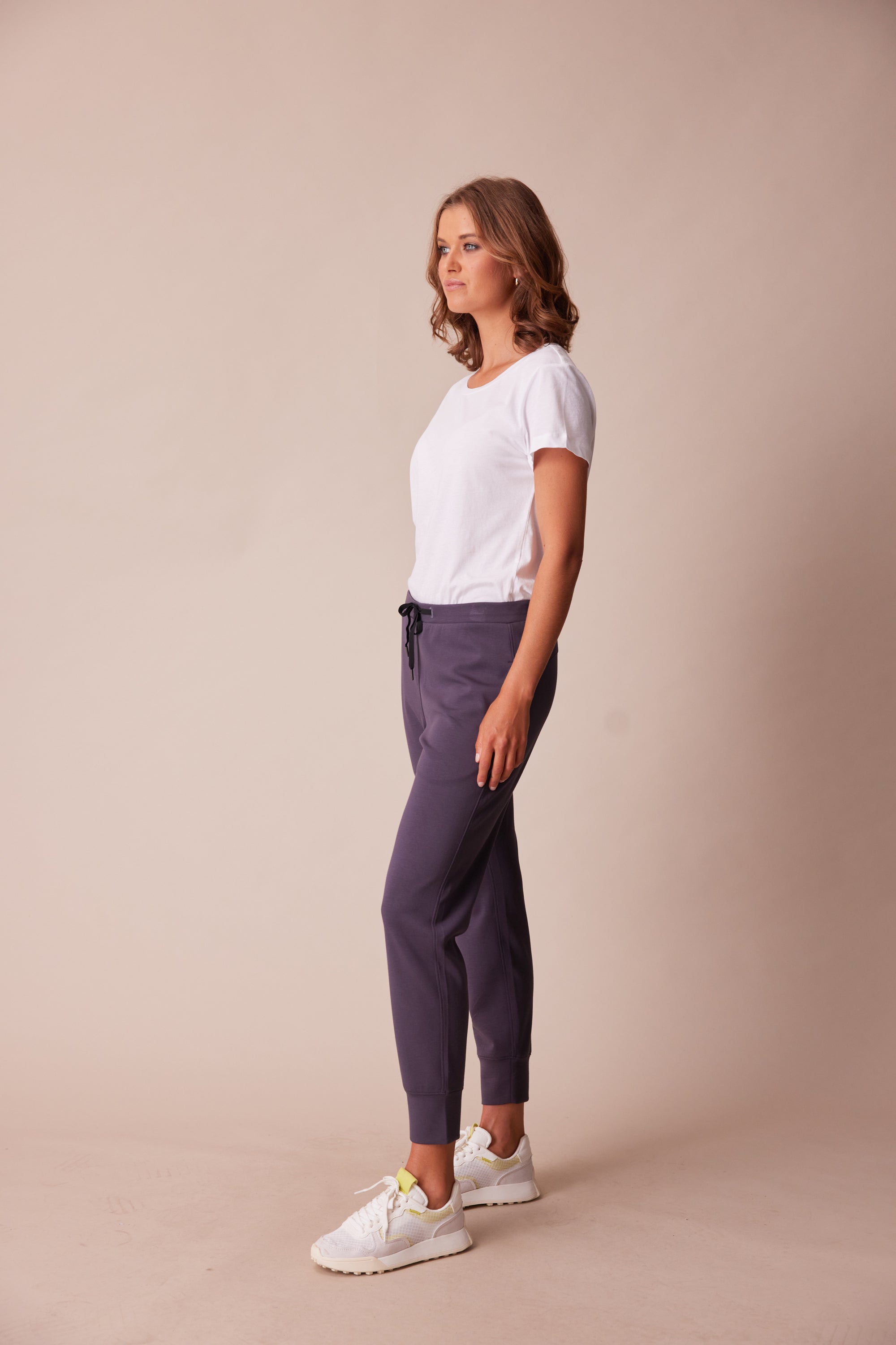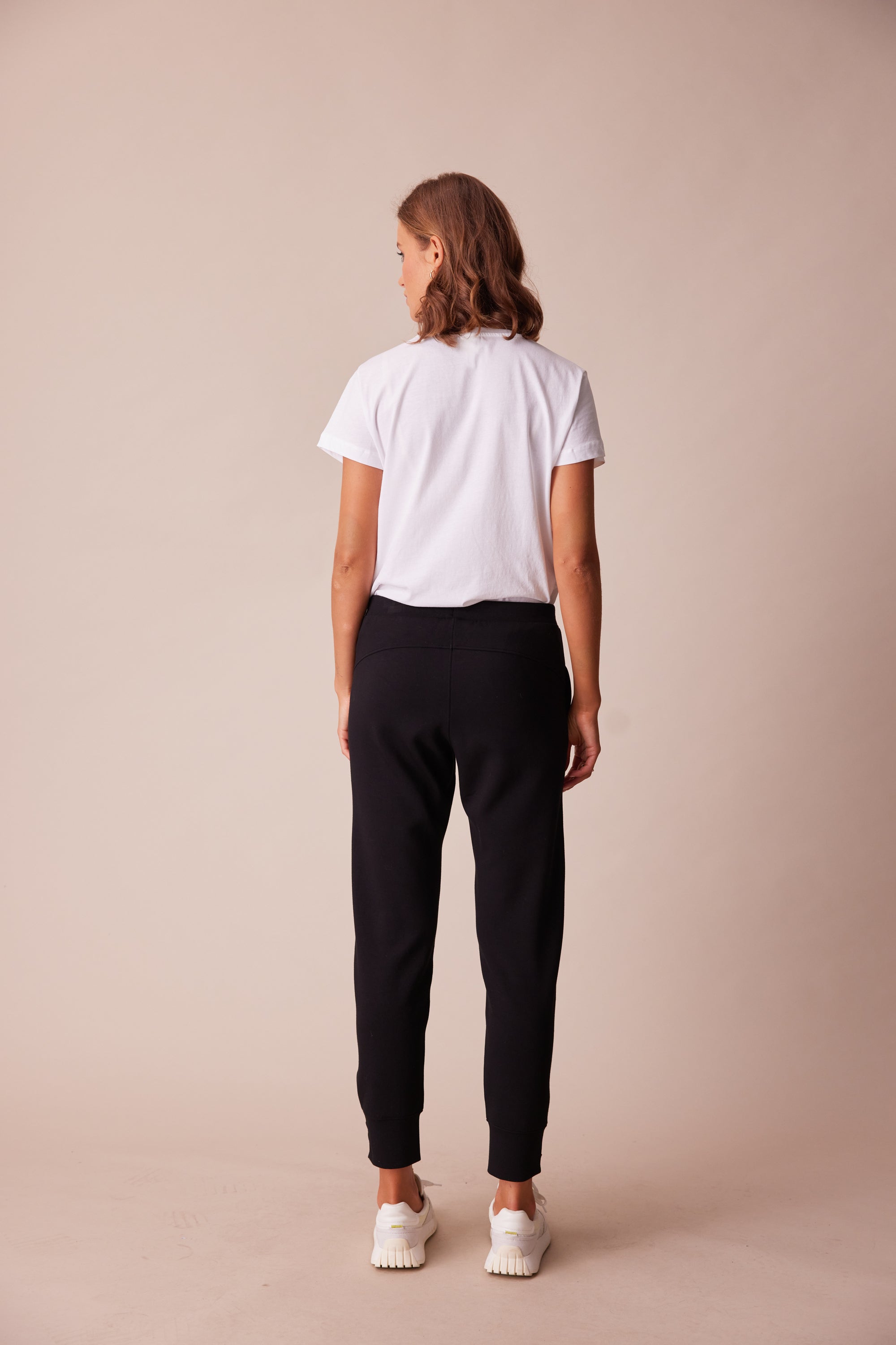 Relaxed jogger in sleek jersey fabric features side pockets and elasticated waistband with adjustable drawcord. Complete the look with the post jacket and sneakers.