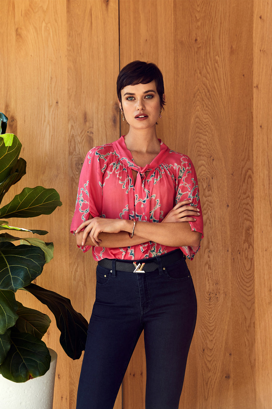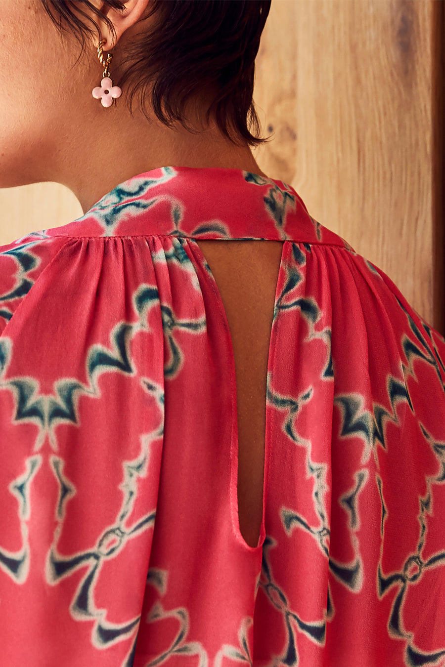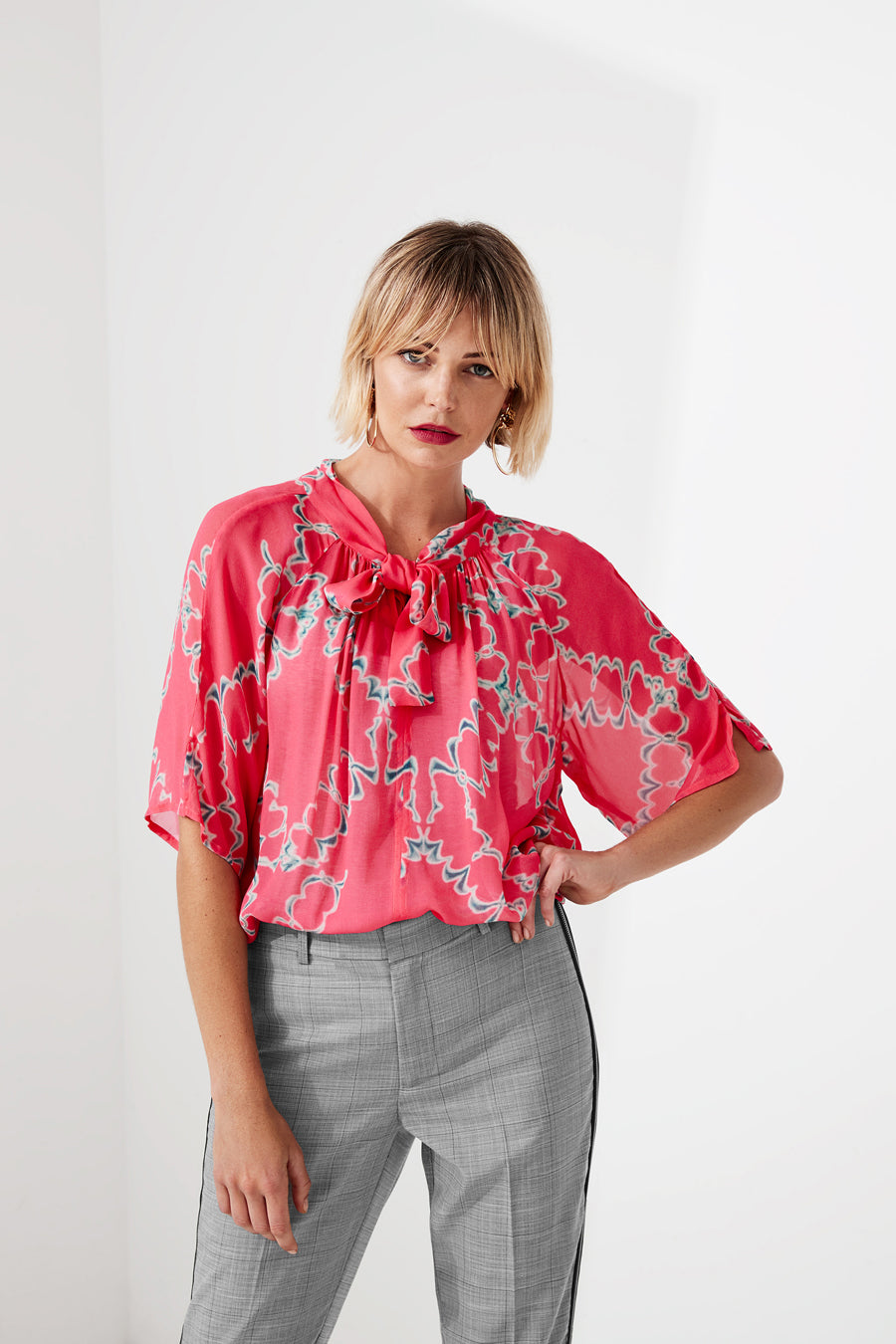 Add some vibrance to your wardrobe with the Siegel tie top, a dreamy sheer viscose top showcasing Siegel bright print, featuring a bow neck that can be worn at front or back as a reversible garment.