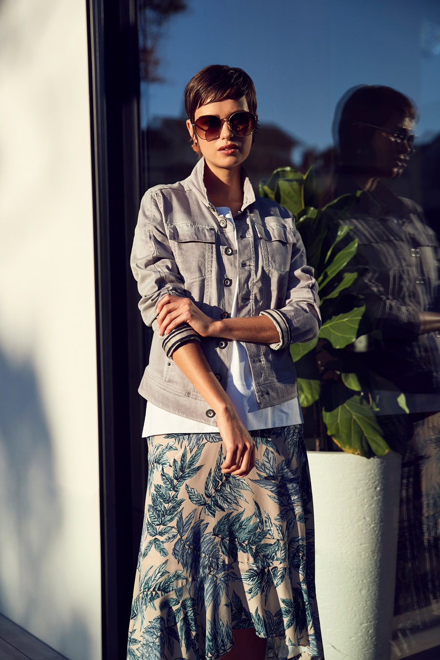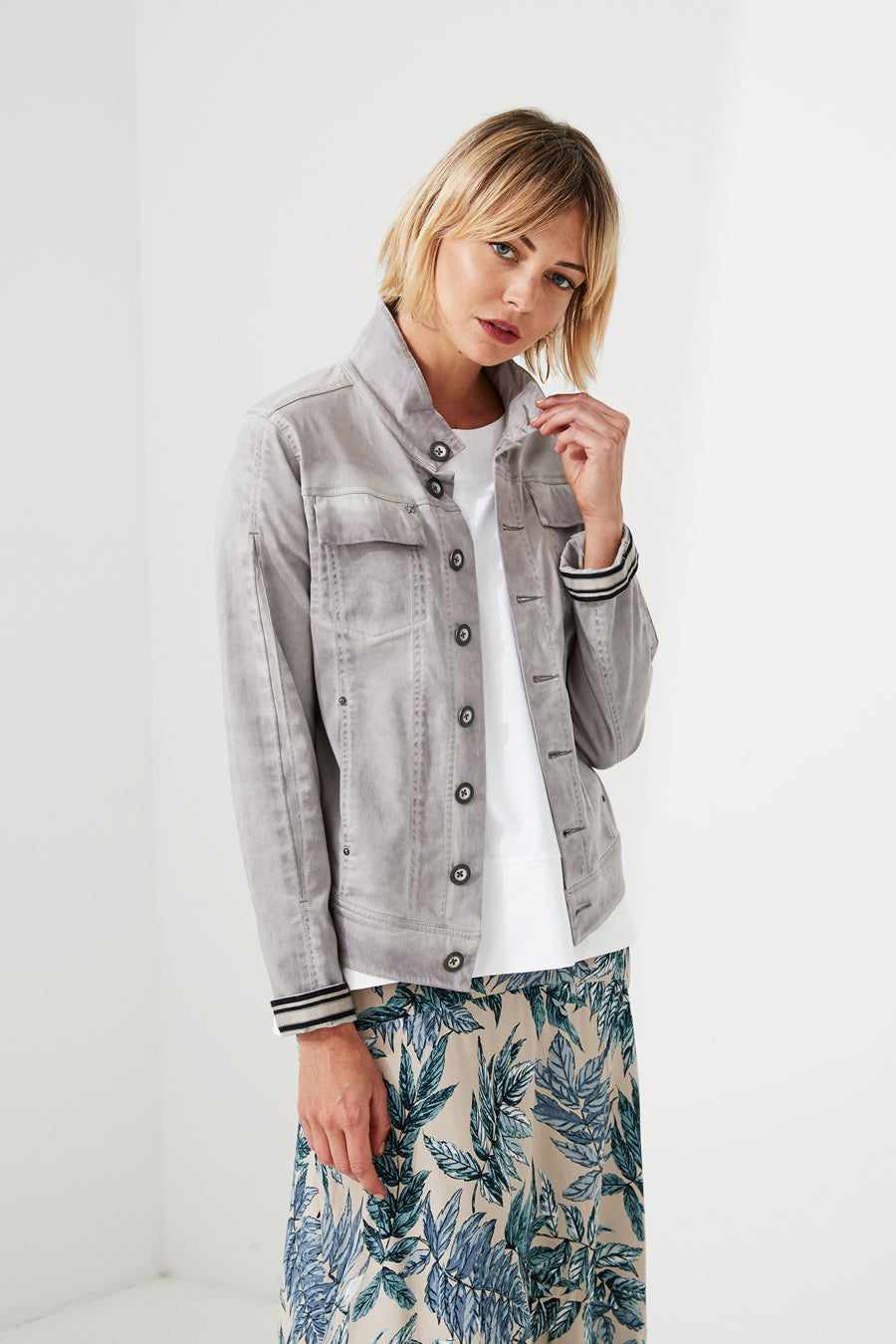 Our spring essential, soft cotton modal jacket, super stretch comfort with flattering silhouette, with hardware features and stripe cuff detail.